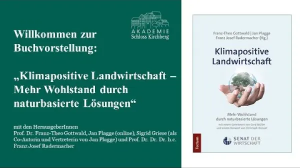 Mit klimapositiver Landwirtschaft in eine ökologisch tragfähige Zukunft - Die Herausgeber Franz Theo Gottwald, Franz Josef Radermacher und Sigrid Griese (als Co-Autorin und Vertreterin von Jan Plagge) diskutierten ihre zukunftsgerichteten und teils provokanten Thesen mit Rudolf Bühler (Gastgeber und Vorsitzender der Stiftung Haus der Bauern) und dem Grünen-Abgeordneten Harald Ebner. → biopress 18.10.21