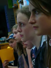 Mit viel Kreativität und Elan konnte der Jugendleseclub das Publikum begeistern: Auf wenige Minuten komprimiert zeigte er die ausschlaggebenden Passagen des Buchs - die spannende Sequenz endete aber gerade an der Stelle, die Neugier erweckt, das Buch zu Ende zu lesen!