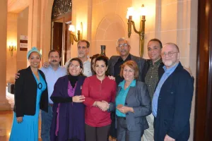 Volker Hermsdorf mit vier der Cuban Five und Familienangehörigen. Zusammen mit Rene González