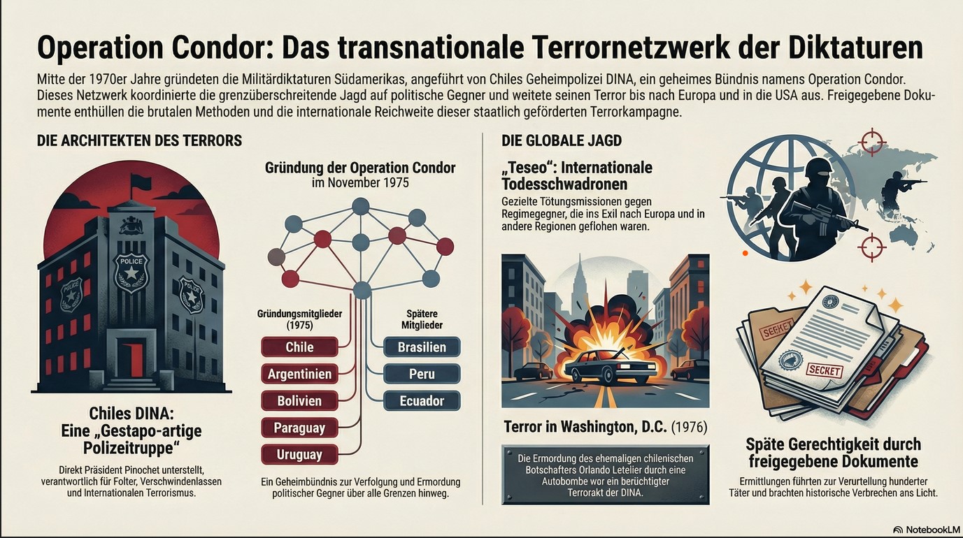 Wikipedia (DE): Operation Condor | Wikipedia (DE): Verschwundene (Desaparecidos) | Website (ES): plancondor.org