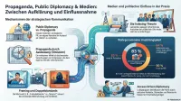 Dieses Dokument fasst die zentralen Erkenntnisse einer Podiumsdiskussion über den Einfluss von Propaganda und Public Diplomacy auf die deutsche Außenpolitik und Medienlandschaft zusammen. Die Diskussion beleuchtet, wie staatliche und nichtstaatliche Akteure die öffentliche Meinung strategisch beeinflussen.
