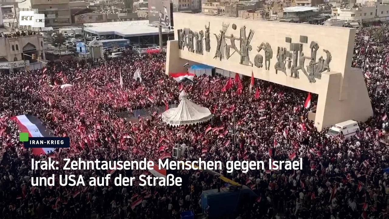 Am Samstag haben sich Zehntausende Menschen auf dem Tahrir-Platz in der irakischen Hauptstadt Bagdad versammelt. Sie protestierten gegen den Krieg Israels und der USA gegen Iran sowie gegen die Angriffe auf andere islamische Nationen in der Region. Der Irak wurde unfreiwillig in den Konflikt hineingezogen, da sowohl Einrichtungen der USA als auch pro-iranische Gruppen im Land angegriffen wurden.