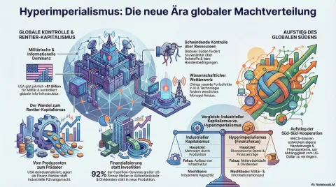 Die Welt befindet sich in einer Phase tiefgreifender geopolitischer Umwälzungen, die durch neue und eskalierende Konflikte gekennzeichnet ist. Um diese Entwicklungen strategisch zu deuten, ist ein neues analytisches Vokabular erforderlich. Der Begriff des Hyperimperialismus beschreibt ein neues, gefährliches und dekadentes Stadium des Imperialismus, das die heutigen globalen Machtverhältnisse prägt. Die strategische Notwendigkeit, dieses Konzept zu verstehen, liegt in seiner Fähigkeit, die Mechanismen hinter den wachsenden Spannungen, wirtschaftlichen Verwerfungen und militärischen Konfrontationen zu entschlüsseln.