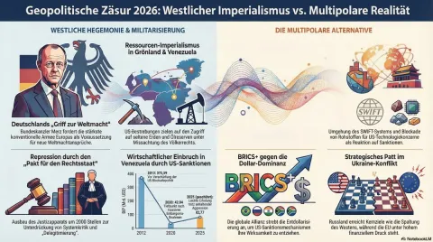 - Innere Militarisierung und Justizreform: In Deutschland wird durch den „Pakt für den Rechtsstaat“ der Verfolgungsdruck auf Kritiker erhöht. Die Einführung eines neuen Wehrdienstgesetzes und die Debatte um eigene Atomwaffen signalisieren eine umfassende Kriegstüchtigkeit der Gesellschaft.