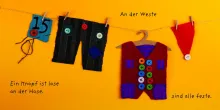 Das Buch regt zum einen natürlich an, die immer mehr werdenden Knöpfe zu zählen und man kann auch die unterschiedlichsten Farben benennen, denn die ganze Farbpalette ist vertreten. Und für echte Knopfspezialisten gibt es noch ein paar Knöpfe für besondere Verwendungs-zwecke.