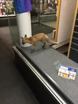 Aufmerksame Passantinnen machten Samstag Nachts eine ungewöhnliche Entdeckung. Beim Blick in unsere Schaufenster staunten sie nicht schlecht: Ein Fuchs stolzierte zwischen den Büchern auf und ab. Schnell sammelte sich eine größer werdende Menschenmenge, die sich das ungewönliche Schauspiel nicht entgehen lassen wollte. Wie ist das möglich? Ein Fuchs in der Stadt und dann noch im Buchladen, statt wie man doch vermuten sollte, im Hühnerstall. Nun ja, auch Füchse müssen sich heutzutage weiterbilden, denn Hühnerställe gibt es so gut wie keine mehr, jedenfalls nicht für Füchse, da ist lebenslanges Lernen unvermeidlich, will man auch zukünftig noch seinen Beruf als Fuchs ausüben.