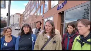 Schulleiter für Aufklärung mit Bianca Höltje am 23. Mai 2021 vor dem ARD-Hauptstadtstudio