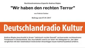 Rechtsextremismus-Expertin Andrea Röpke beschreibt in ihrem "Jahrbuch rechte Gewalt" verheerende rechtsextreme Tendenzen in Deutschland. Die Journalistin warnt vor einer Art Alltagsterror, der aber verglichen mit den islamistisch motivierten Anschlägen kaum Aufmerksamkeit erfahre.
