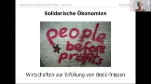 Die herrschende Wirtschaftsweise ist nicht tragfähig, weder unter ökologischen noch unter ethischen Gesichtspunkten. Mit ihrer Orientierung auf Profitmaximierung führt sie zu systematischen Verstößen gegen die Menschenrechte und zerstört unwiederbringlich die natürlichen Lebensgrundlagen. Für eine nachhaltige Wirtschaftsweise reicht es jedoch nicht aus. Unternehmen ein bisschen ökologischer, sozialer oder demokratischer zu gestalten, sondern diese andere Wirtschaft braucht ganz andere Funktionsweisen. Vortrag von Elizabeth Voss im Rahmen der Philosophischen Matinee im LOGOI.